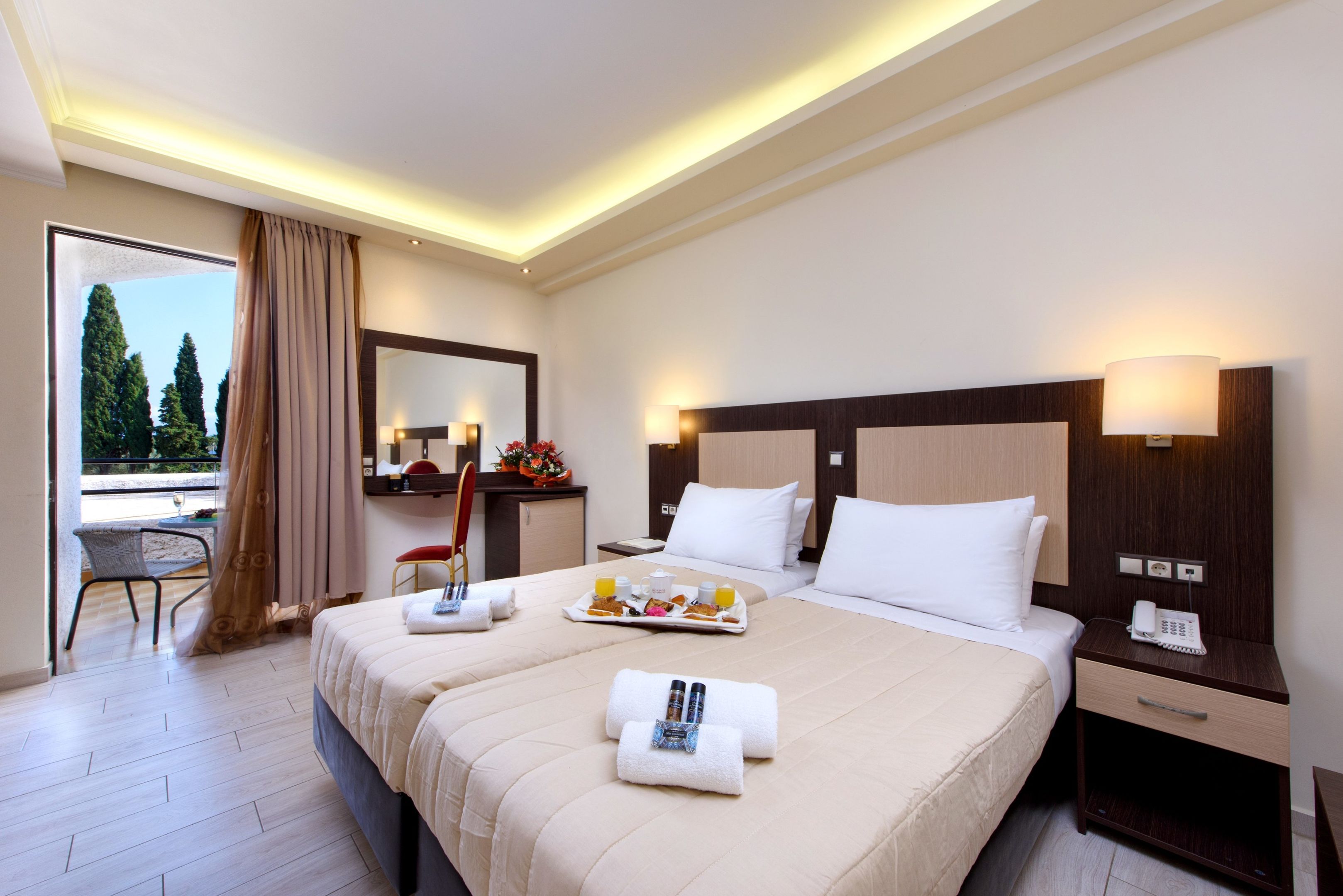 Corfu Town is only 20 minutes’ drive away, and there are regular buses if you haven’t hired a car. Here you can visit Venetian fortresses or the Old Town and take a glass-bottom boat tour from the harbour. Pony treks are a fun way to travel if you want to go inland and explore more of the island, or on a hot day you can cool off at the Aqualand water park!